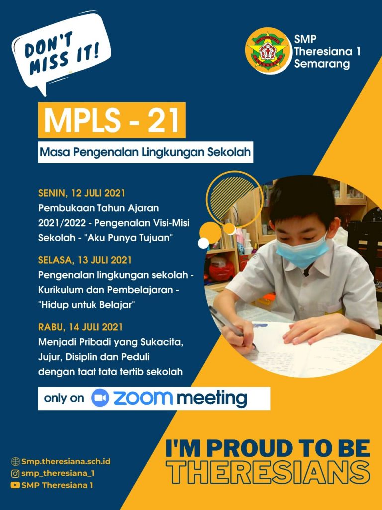 Masa Pengenalan Lingkungan Sekolah (MPLS) diadakan setiap awal tahun ajaran baru untuk siswa-siswi kelas 7. Kegiatan ini dilakukan dengan tujuan mengenalkan siswa-siswi kelas 7 dengan lingkungan sekolah tempat mereka belajar. Dengan adanya kegiatan ini, siswa-siswi merasa memiliki dan merasa nyaman belajar di SMP Theresiana 1.